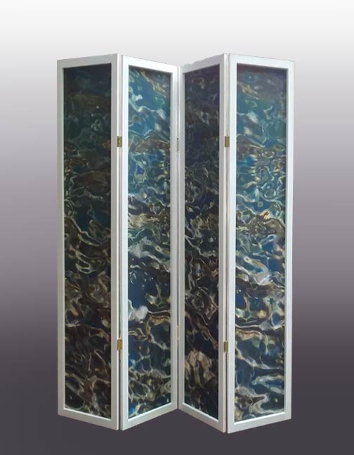 Blue Ripples Art Screen |  pvc print, wood, and acrylic paint |   88" x 96" |   Daniel Wend